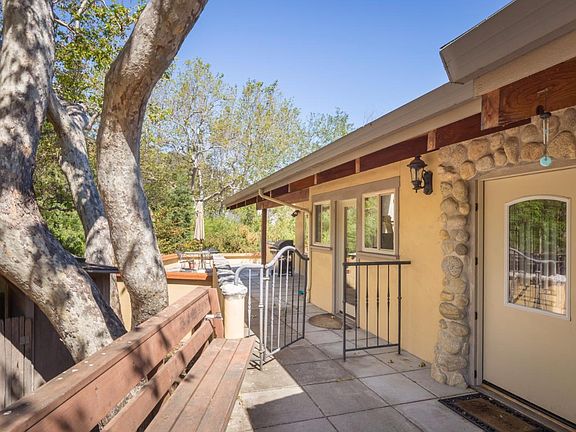 Magical 2.5 flat acres - within easy walking distance to the Village and its restaurants, shops, wine tasting, schools - yet hidden, secluded and quiet! Well set up horse facility with 3 corrals and tack room. The 5 bedroom 3 bath home with attached 2 car garage was designed by a local architect for his own use 20 years ago with soaring ceilings and skylights throughout for maximum light and indoor/outdoor living. Quality feel, good design. There is a detached 3-car garage. There is a chicken coop with skylight - complete with chickens! Storage barns. Fully fenced garden areas with fruit trees, vines, raised vegetable beds, and cistern system for virtually year round water for the crops, plus a path to a little spot by the River! For California dreamin', perfect Valley weather, with a "far out" feel but close-in in fact, this is the spot.