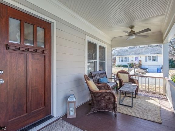 Pristine 3 bedroom home with the front porch we all wish we had, oversized custom moldings and gleaming hardwood floors throughout, in the heart of Basking Ridge - walking distance to downtown, restaurants, train, parks, and Oak Street Elementary School!! First floor, which has recently undergone a major transformation, now has an open floor plan, a beautiful formal dining room which can easily be converted back to a bedroom or office , and a brand NEW wood burning fireplace and chimney that has become the centerpiece of this amazing home. The kitchen shows off a coveted Viking range and chimney hood among its stainless steel appliances, granite countertops, HUGE walk-in pantry, and large triple window - which looks out onto a brand NEW composite deck. Second floor has 2 substantially sized bedrooms with ample closets, and equally spacious hall bath, as well as a large master en-suite with walk-in-closet, oversized shower, and extended vanity for extra counter space. Finished basement is the perfect extra space for a family rec room, and ceiling is high enough to fit a treadmill and Peloton. Bonus: whole house built-in generator!