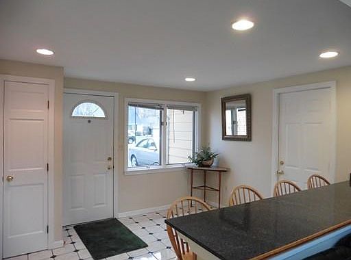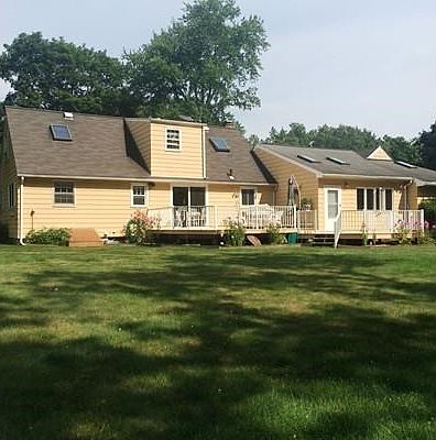 Spacious, well maintained Cape in desirable area. Office on first floor could be fifth bedroom for great guest room. Family room with vaulted ceiling, skylights, breakfast bar with granite top and door to lower deck. Dining room has slider to upper deck which overlooks large yard that abuts conservation land. Maintenance free two tierd trex deck with aluminum railings. Burst of color with beautiful perennials all summer. Lovely area with brick patio in front of house. Most rooms have replacement windows. Additional living space in finished rec. room in basement. Storage shed included,.