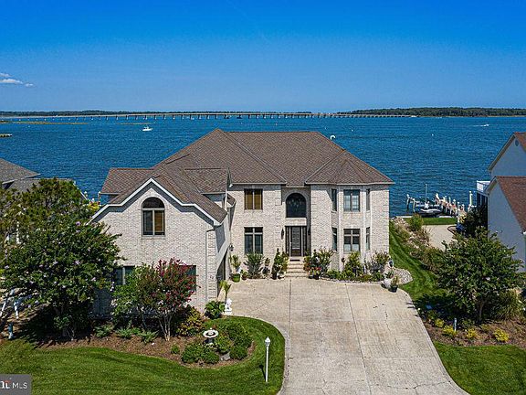 Spectacular One-of-a Kind Custom Built Direct Bayfront residence. Savor the unobstructed views of the Isle of Wight Bay, Ocean City Skyline & the Rt. 90 Bridge. Your watercraft will be at your immediate beck and call just steps from the spacious rear deck! There is 90' of bulkhead, replaced in 2019, a private pier, 9,000 pound Boat Lift with remote, water and electric, and also a permit for a jet ski lift. This home welcomes you into the 2 story foyer through the leaded glass door and custom marble tiled floor. Hardwood Floors, Ceramic Tile, and Andersen Casement windows and doors are found throughout. The formal Dining Room features a striking architectural ceiling, built-in cabinetry, and a Viking Wine Cooler. You will enjoy cooking in this Gourmet Kitchen highlighted with Top-of-the-Line Cabinetry, Granite Counter Tops, Extra-Large Island with prep sink, breakfast bar, and Commercial Quality Viking Stainless Steel appliances. The adjacent Family Room and Living Room boast window walls showing off the expansive water views, and a 2 sided floor to ceiling Stone Fireplace with Granite Base. One of the Primary Bedrooms is located on the 1st level, with another striking ceiling and wall of windows, an oversized 6' whirlpool tub, tiled & polished stone separate shower with 8 jets and 3 shower heads. The home's central focus is the beautiful custom curved stairway with wrought iron accent railing. On the 2nd level you will find 3 more bedrooms (one with a private balcony), 3 full baths, an office, and a "Bridge" overlooking the entry and living areas. A 2nd set of stairs leads to a huge Game Room, complete with Vaulted Ceiling, Pool Table and Granite 7 ' Bar equipped with cabinets, bar sink and under-counter refrigerator. From here, a 3rd stairway leads to the unfinished attic, a 10x20 area that could add more square footage if needed. All of the features of this special home are too numerous to mention, but are outlined separately for any potential purchasers.