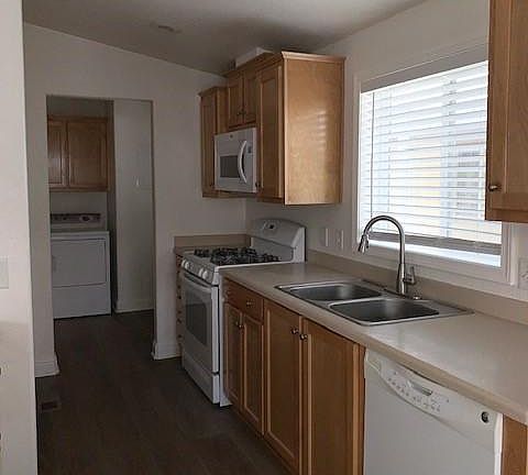 This is a 55+ Community ~ Charming 3 bedroom 2 bath Home features an open kitchen to the living room floor plan with custom cabinets, granite counter tops, recessed lighting and includes white appliances. Ceiling Fans, Vinyl plank flooring and carpeting in bedrooms. Laundry room includes washer and dryer. Small fenced backyard. Community Amenities: 1 Heated Pool, 1 Spa, Laundry Room, Clubhouse, Greenbelt Areas For An Additional Charge talk to the Park Manager for RV and Garage Rental Spaces. Prices subject to change. OAC- EHOP. Equal housing Opportunity Office Hours: Monday - Friday 9:00 am to 5:00 pm Tenant is responsible for utilities. We are pet friendly. Pet Policy: 2 small pets (under 14 inches in height)