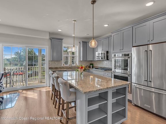 Discover an exceptional luxury townhouse in the prestigious Harborside at Hudson's Ferry, boasting a premier location and awe-inspiring panoramic views. This 3-bedroom, 3.1-bath residence sits within an exclusive enclave along Sandy Hook Bay, offering a wealth of impressive features. Natural light floods all three levels, enhancing the open-concept layout. Custom built-ins provide abundant storage, while gleaming hardwood floors add elegance. Multiple balconies and a rooftop deck elevate your living experience. The 1st floor welcomes you with a foyer, mudroom, bedroom with a convenient Murphy bed, and a covered patio. The 2nd level encompasses a spacious dining room, family room, gourmet kitchen with a generous center island, an office nook, powder room, and two balconies. On the 3rd floor, the primary bedroom boasts a vaulted ceiling, balcony, luxurious bathroom with a double vanity, walk-in closet, and additional built-ins. The guest bedroom offers an en-suite bath.Entertain and unwind on the private rooftop deck, with breathtaking views of the Bay, iconic NYC skyline, and picturesque sunsets. Convenience meets luxury, as you're less than half a mile from the Seastreak ferry for an easy commute to NYC. Enjoy an array of recreational opportunities, including the Sandy Hook Bay Marina, One Willow restaurant, Sandbox beach bar and music venue, Henry Hudson Trail, Dog Park, and Popamora Point Beach. This is an unparalleled living experience!