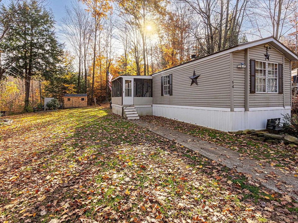 Welcome Home to Mountain View Coop. Your new home will provide you will peace and tranquility. The House offers three bedrooms and 2 bathrooms, Open Eat-in Kitchen and Livingroom. The screened porch will give you the opportunity to enjoy a natural/peacfull setting. Will also benefit from extra exterior space as this lot is tucked in the back of the neighborhood. I generous double tiered lot provides extra space for leisure. The Co-op allows pets without restrictions. Park Approval required for new residents.