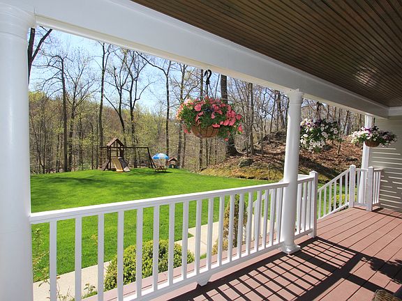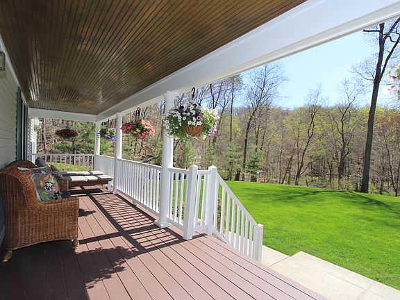 Come enjoy the beauty of nature from the covered front porch of this center hall colonial set amongst natural rock outcroppings and surrounded by acres of woods. This special home features two double sided fireplaces, one on the first floor between the living room (currently used as a dining room) and family room, and one in the master suite between the sleeping area and the dressing area. There is a wet bar between the family room and living room, and the family room and kitchen both open out to the deck in back of the house and an outdoor fire pit/barbecue. The property is completely fenced, with a gated driveway, and the home is set attractively above and away from the street for maximum privacy. The basement rec room is not included in reported square footage or room count. Post Office address is actually Ossining, as zip code indicates, not Croton-on-Hudson.