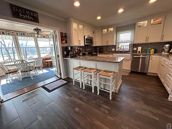 An incredible setting, 1.15 acre lot right on Thorndale Lake, just minutes outside Emporia! Gorgeous split style home with many updates to make this your dream home come true! Finishing touches on this beautiful kitchen with custom cabinets, quartzite countertops, tile backsplash and under-cabinet lighting. Beautifully landscaped yard with Private in-ground pool and gazebo. Enjoy year-round use of the enclosed porch overlooking the back yard & the lake. You can enjoy fishing on the stocked pond, kayaking, or just watching the views all in your backyard! All brick home with newer roof and hail resistant shingles, open layout, and walkout basement with 2nd fireplace, a must see while it lasts!! This all-brick home is picture perfect. Hardwood & tile flooring throughout ~ updated kitchen with granite counter tops & stainless-steel appliances. Walk out basement with 2nd fireplace, 2nd kitchen and 4th bedroom. Beautifully landscaped yard with in-ground pool and gazebo. Enjoy year round use of the enclosed porch overlooking the back yard &the lake. This home is ready for you!