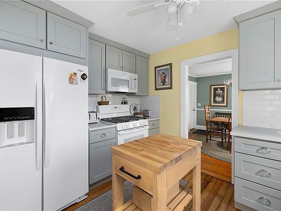 Warren charmer just steps from the East Bay Bike Path! Walk to water (one block away), East Bay bike path, coffee shops, restaurants, shopping, farmers' market, and all that delightful and very popular Warren has to offer. With its freshly painted exterior and new stone patio, this lovingly cared for colonial is just right! The kitchen (gas range) has been completely renovated with stylish cabinetry, tile and pretty hardware. A new 1/2 bath and laundry nook were thoughtfully tucked next to the kitchen. Perfect for entertaining or keeping snug by the fire - the large living room leads to the dining room and the sun splashed porch. Relax or locate your home office, guest room, library, etc on the porch. With original and shining woodwork, the stairs lead to 2 generously sized bedrooms and a renovated full bath on the 2nd floor. The backyard is a peaceful and fun oasis with a fire pit, outdoor shower, and stock tank pool! A full basement provides ample storage. Exterior scraped and painted in 2022. One car attached garage makes inclement weather a snap. Just move right in!