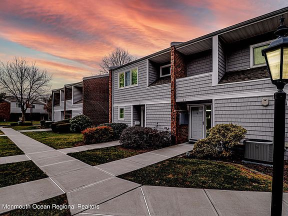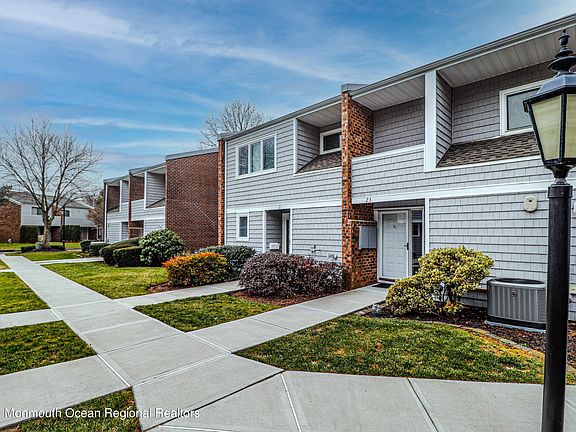 Tucked away in a lovely gated community is this beautifully updated 2 bed 1 1/2 bath home that can be enjoyed year round or as a summer retreat. 1st floor features newly remodeled kitchen w quartz countertops, stainless appliances and new vinyl plank flooring. Powder room, living/dining area w fireplace and slider to outdoor patio, laundry/utility room. 2nd floor has 2 bedrooms, walk in closets n new carpet throughout. Master bedroom has balcony overlooking the 2nd hole of the golf course. Brand new furnace, central air n recessed lighting. Includes oversized 1 car detached garage. Complex includes 24 hour guarded entry, heated pool, tennis, clubhouse, golf course and pro shop. Minutes to Spring Lake beach, shops and train!