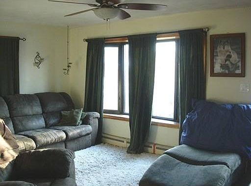 Great location near the South Hadley line. 5 room brick ranch that sits on a HUGE fully fenced cleared lot with woods in the rear. This home has an eat in kitchen, living room with hardwood floors under the WW carpeting. The electric fireplace and flat screen TV remain. There are ceiling fans in just about every room and wall AC unit that cools the entire home. There is a heated basement with a toilet & sink that could be finished off to make a half bath. It has a walkout hatchway into the back yard. A 1 car garage and triple width driveway adds to the convenience of this home. Some more recent updates (all APO) are 7 year old roof, newer dishwasher, 3 year old HB Smith boiler and newer oil tank.