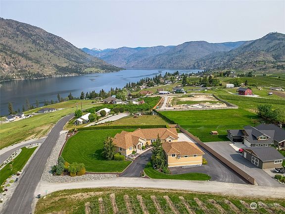Welcome to 23 Lookout Ridge Lane! Incredibly well cared for single owner home where pride in ownership is evident! 3,600sqft+ of living space on an acre of beautifully landscaped land w/ gorgeous views of Lake Chelan, South Shore's Slide Ridge, & panoramic views of the Manson territory! Home lives nicely as a rambler if desired w/ plenty of extra space in the daylight basement & has had significant recent updates including all new exterior paint & 2 new heat pumps & furnaces! Over 2,450sqft of total garage space w/in attached 3 car garage & massive, detached shop which is heated & has an office plus 1/2 bath. Paved circular driveway, lots of outdoor living space, plenty of room for a pool, & RV parking w/ water, power, & sewer hookups.