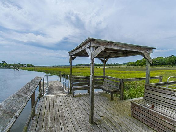 DEEP WATER! It is so awesome I will say it again. DEEP WATER! 2.2 Acres sitting along the Colburg Creek, also known as Wappoo Creek. 1 acre of highlands and 1.2 acres King's Grant marsh. A covered pier head and a floating dock just waiting on you and your boat. From your Dock, if you turn right you are 3 Bends in the Creek to the Stono River or turn to your left and you are 8 Bends in the creek to the Ashley River. What a great location! All of this and just minutes from downtown Charleston or even the trendy Avondale area of West Ashley. Your home is a 4 bedroom 3.5 bath solid constructed home with a retro look. The family installed terrazo floors with marble inlay thru most of the home. Raised beam ceilings in the family room and even a Travertine tile front on the fireplace. Lots of opportunities to make this your dream home with over 2700 square feet to work with. The garage was converted to a workshop/rec area including a 1/2 bath. Check out the circular drive way with the brick inlay. It even has a detached storage building to keep all the extra stuff like kayaks and inner-tubes for floating in the creek. Don't miss out on the opportunity to own a deep water home and lot with a dock. (Property sold "as is")