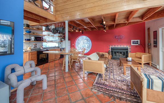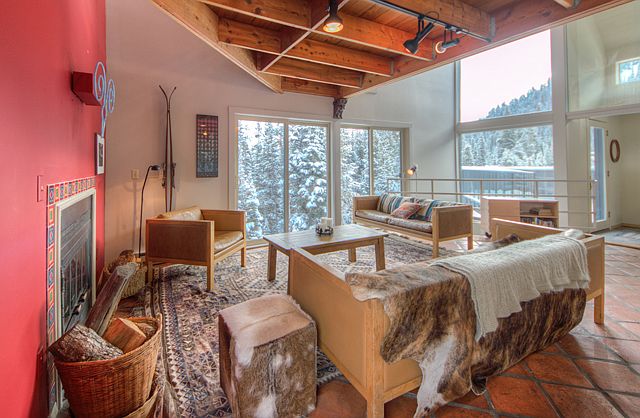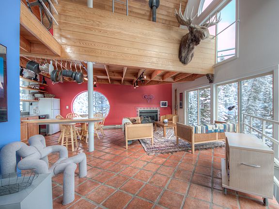This contemporary Mountain home is like no other!The architects' inspiration for this unique home came from the grain silos that are found on farms and homesteads throughout Montana. Located in Big Sky's Mountain Village, this ski in/ski out residence offers 4 bedrooms, 4 baths,2 separate living areas, and gorgeous views from large windows in every room of the home. Love water? The home is positioned on a hilltop over a creek, and Lake Levinsky is right down the street. This home is offered fully furnished.