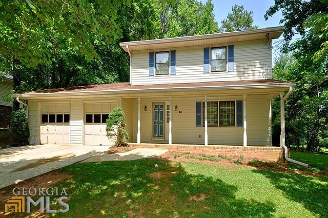 PRETTY TWO STORY TRADITIONAL WITH FRONT PORCH. Foyer, living room, dining room, kitchen w/electric range, dishwasher, trash compactor, stainless sink, pantry & breakfast area & open to family room w/wood stove f/p & built-in bookshelves. 4 Bedrooms upstairs and 2 baths plus a half bath on the first level. Double garage w/front entry. Patio. Fenced backyard w/outbuilding. Central natural gas heat & central electric a/c. Northgate High School district. Easy access to both downtown Newnan, Hwy 34 Bypass and I-85!
