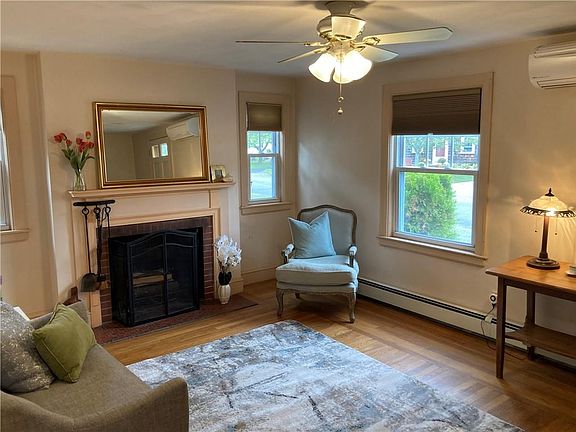 Price reduction! Classic cape in lovely pocket neighborhood. 1200+ sq ft home with updated systems features charming living room with wood-burning fireplace, a dining room with full opening to an efficient L-shaped kitchen, first floor bedroom, full bath with whirlpool tub, plus an added-on sunny rear patio room. Second floor features 2 sunny bedrooms, a bonus room and half bath - - would be terrific setup used with the bedrooms at each end of house with shared playroom/study in middle, or create a master suite! Relax under mature shade trees in the oversized fenced rear yard, w. large octagonal deck, border gardens, and 2 ample sheds for easy outdoor storage. Home systems updates include: 4 ductless AC units on 1st floor, 2 yr-old furnace, 2 yr-old water heater, and upgraded electric. Located on a quiet side street neighborhood with gym, bank, CVS, and shopping all within a few blocks. If you act now, you can be in this sweet home for the holidays!