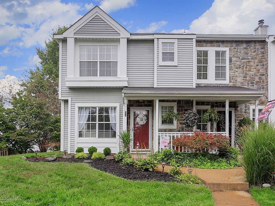 Beautiful end unit located in Fox Chase! Featuring a BRAND NEW kitchen with custom white cabinets, granite counter tops, subway tile back splash! New vinyl flooring installed in the lower level. Large living room and dining room. Dining room has sliding doors taking you outside which is conveniently located near the playground and tennis court area! Recently installed paver patio in the back yard. Head upstairs to find the 2 bedrooms. Both bedrooms have attached bathrooms. Master bedroom has a walk in closet and vaulted ceiling. Laundry room located on the 2nd floor. Newer central air and gas furnace. New tankless hot water heater. House is in move in condition ready for new owners!