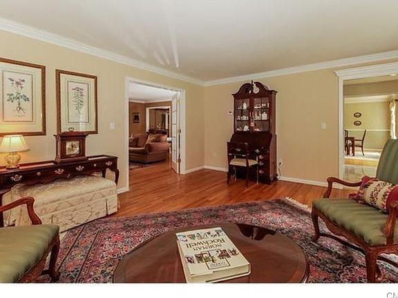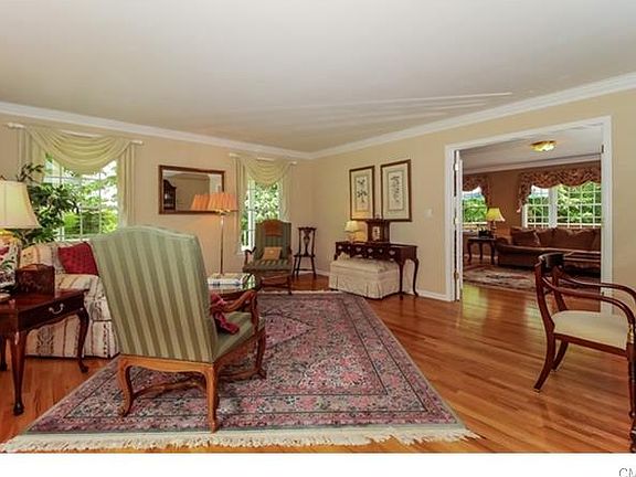Stately Colonial on prestigious Maplewood Drive, a sought after street of fine homes. This house offers an open floor plan with an abundance of natural light. A traditional floor plan with spacious rooms and a great flow for formal and informal entertaining. An inviting main level family room with fireplace and wet bar opens to the large formal living room which flows to the formal dining room. The kitchen offers a large dining area as well as granite counter tops, stainless appliances, pantry and ample cherry cabinetry. Private Master bedroom suite with walk in closet,full bath and loft/library/office. Three additional generous sized bedrooms. Main level laundry/mud room,media room,wrap around porch,deck, City Sewer!