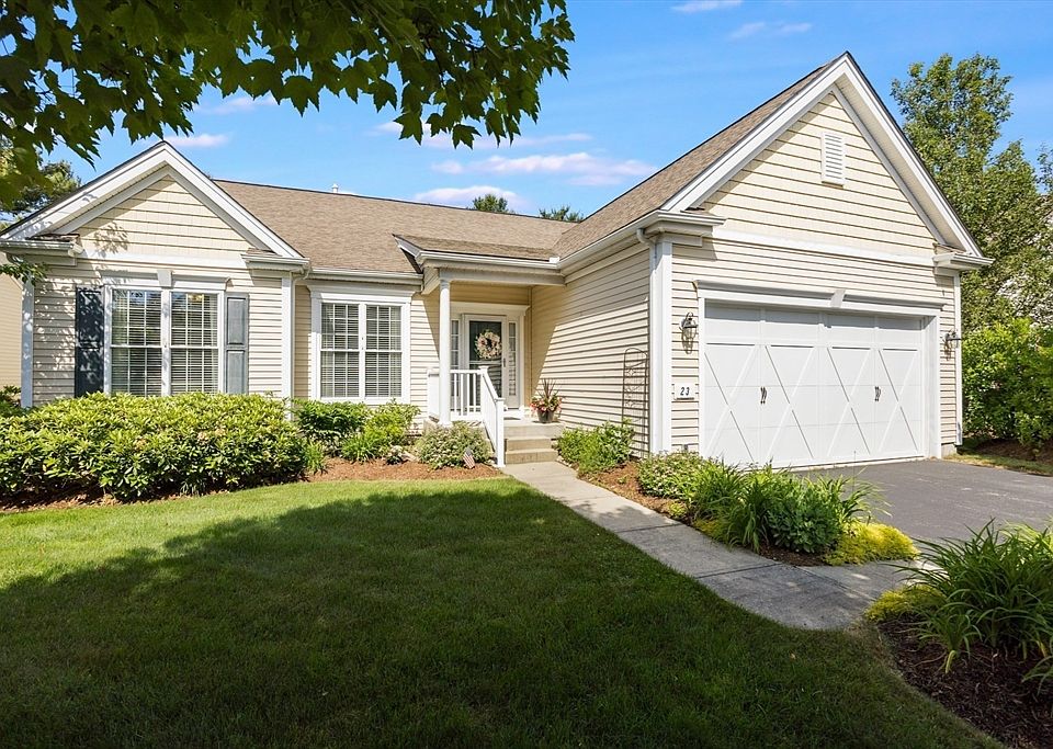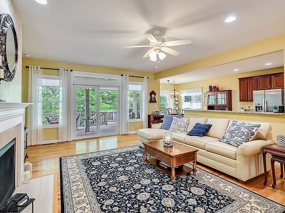 ONE OF A KIND ON CLAM PUDDING POND! Wooded and pond views and access to the pond. Enjoy the sunsets hitting the water with nature all around. Highly sought after "Adler" model home at Great Island, a 55+ community in The Pinehills. Hardwood flooring and open floor plan of dining room, living room and large eat-in kitchen. Slider door access to covered and extended open deck from the kitchen eat-in dining area /sunroom and fireplaced living room. Large kitchen with cherry cabinetry, granite counters, stainless steel appliances, pantry and eat-in area. Dining room with wainscoting, crown molding and hardwood flooring. Primary suite, guest bed and bath, and office with French doors on first level. Great location in a quiet neighborhood. Close to Overlook Clubhouse with indoor pool, jacuzzi, fitness center, outdoor bocce and pickle ball and more amenities to enjoy.