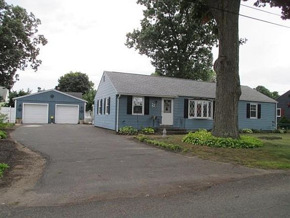 You must see this remarkable ranch with 4 bedrooms! Spacious kitchen with room for a large table and access to a sunny screened porch. Large living room with hardwood floors and bow window. Ceiling fans and hardwood floors in 2 bedrooms. First floor laundry in one of the bedrooms, which could be relocated to basement if the 4th bedroom is needed . Finished room in basement. Beautifully landscaped back yard is a bird lovers paradise with perennials and bird houses. Detached oversized two car garage with openers, and extra shelves for storage. There is a handicapped ramp from the driveway. This home is conveniently located on a quiet side street with easy access to Mass Pike, Rt 291 and Rt 91.