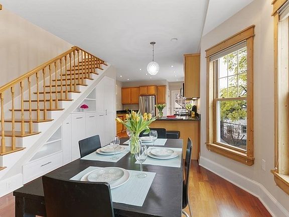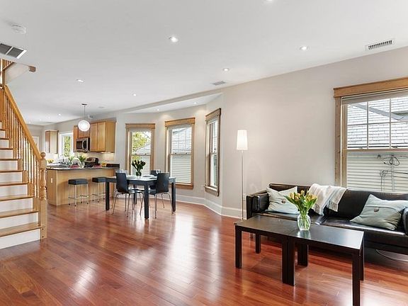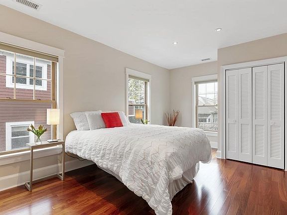 Great location near Tufts and Davis! This condo is over 1700 SF spread out on 2 levels. The first floor has an open floor plan with a large updated kitchen, lots of storage space and tons of natural light. Also on the main level you'll find a 1/2 bath w/ washer dryer, a master suite with full bath, and a home office w/ beautiful built-in desk & cabinet and access to the front balcony. Upstairs you'll find a 2nd suite (open to the stairwell) with skylights, window bench seating, a 2nd full bathroom with tub/shower combo, and a bonus room which would be great for a second office, or a bedroom. There are private front & back decks on the main living level, a shared back yard, CENTRAL AIR, in-unit laundry, garage parking for 1 car, and private basement storage. The tenant is responsible for utilities.This is a quiet 2 family in Davis Square with an owner occupied unit below. No cats, undergrads or smoking (firm). Available 9/1. Dogs considered on a case by case basis.