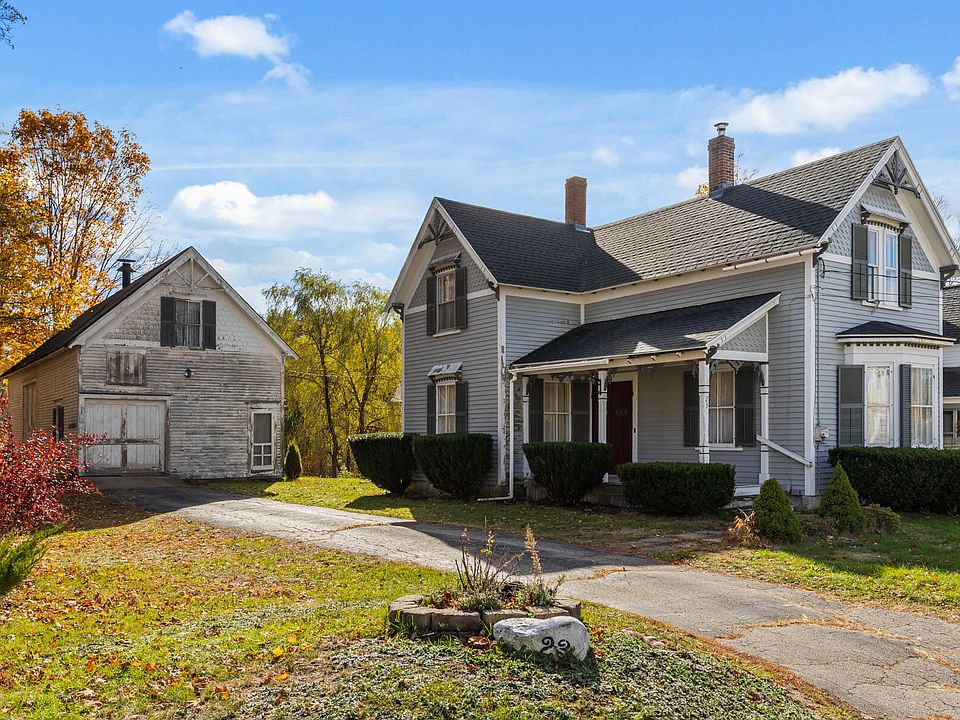 Tucked away at the end of a quiet little street, this classic 1880 New Englander is brimming with stories to tell and beauty to share. Step inside and you'll be greeted by the warmth of hardwood floors, original walnut woodwork, and handsome moldings that whisper of another era. Every room invites you to slow down, dream big, and imagine the possibilities of your life unfolding here. A first floor layout that's warm and inviting still gives an open layout between kitchen and dining spaces. Three well portioned bedrooms and full bath finish off the upstairs. Outside, an endearing 22x50 barn stands ready for its next chapter—whether it's a workshop, studio, or a space to tinker and create. Nearby, a delightful 14x16 gardener's shed awaits, perfect for potting plants or simply enjoying a quiet moment among the flowers. Peaceful, full of character, and rich with potential, this New Englander is a piece of history waiting for someone to love it again.