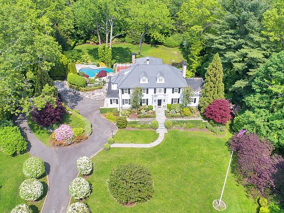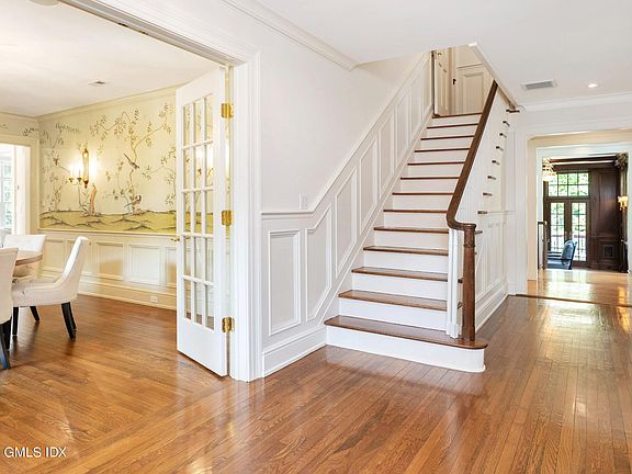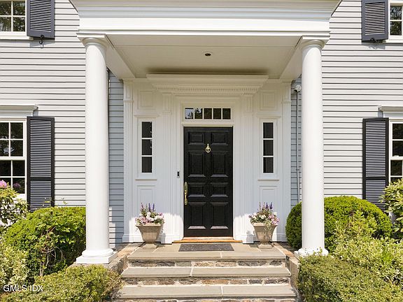 Quintessential Mid Country Greenwich home located on a quiet lane with easy access to downtown amenities. Beautiful property abutting Land Trust Conservation. Traditional colonial layout with multiple spaces for casual and formal entertaining. The large windows and french doors run the length of the rear of the house bringing in natural light and offering access to the stone patio. The walkway down to the infinity edge pool will make you feel like you are on vacation at home. There are several options for home office space. Beautiful millwork and hardwood floors throughout. Primary bedroom and additional 4 bedrooms on second floor, bonus 3rd floor area with full bath perfect for playroom, gym, or guest space