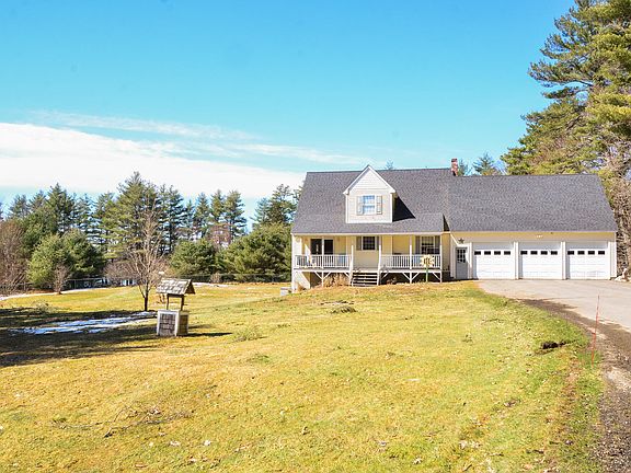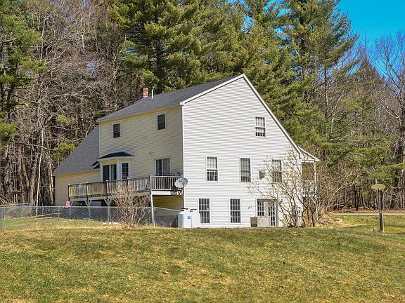 Charming Saltbox Cape. Country living at it's best with right of way to China Lake on Fire Rd 18. This 4 bedroom, 2 bath, 3 car garage is nestled in on a private dead-end road. The first-floor features open concept living. The kitchen has a pantry, peninsula, plenty of cabinets and counter space. The dining room space has glass doors to the front porch and flows into the spacious living room which has sliders to the back deck. The first-floor primary bedroom has sliders to the back deck as well and a spacious bathroom with walk in closet. The second floor has three more bedrooms and a large shared bathroom. The unfinished heated daylight basement is just waiting for your finishing touches. The home has an attached three car garage with storage above. Outside features a beautiful landscaped yard, large fenced in area in back, pond, tar driveway, short walk to the lake both at the right of way and through the back yard. The home has a full house on demand generator. Enjoy wildlife from the front porch or back deck.