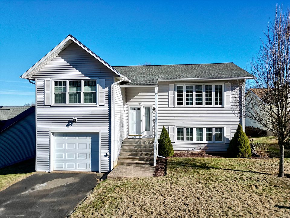 Step into comfort and style in the heart of 'Whitehawk Ranch'. This well maintained raised ranch is situated on a quiet cul-de-sac. The open floor plan is ideal for many lifestyles with a spacious eat-in-kitchen featuring; modern stainless steel appliances, granite counters, and a stylish tile backsplash. The dining area flows effortlessly into the living room and deck where natural light streams through the expansive casement windows and slider. Step onto the rear deck to savor beautiful mountain views, which unfolds a picturesque backdrop throughout the seasons. The home includes three cozy bedrooms, with a primary that offers privacy and comfort adjacent to the hall full bath. The bright and versatile lower level is perfect for a recreation room, home office, gym, or playroom. This overflow living space is complete with an additional bedroom, full bath-laundry combination and speaks to the ease of daily living. Abundant storage in the unfinished area and direct walkout to the backyard, where you can create your own oasis. The backyard shed affords you additional storage. Ideally located just blocks from Bristol Central High School and convenient to a variety of restaurants, shops, cultural attractions, medical centers, golf course, Cedar Lake, skiing, parks and essential services. Discover the perfect blend of tranquility and convenience in this delightful Bristol residence. Seller prefers to sell in "As Is" condition for convenience-the home is very well maintained. The town card reflects 23 Mohican Ln as the address as well as 41 Miller Rd, Unit #23. Room measurements are estimates. Video surveillance in use. Please submit highest and best by Sunday 1/19 at 5PM.