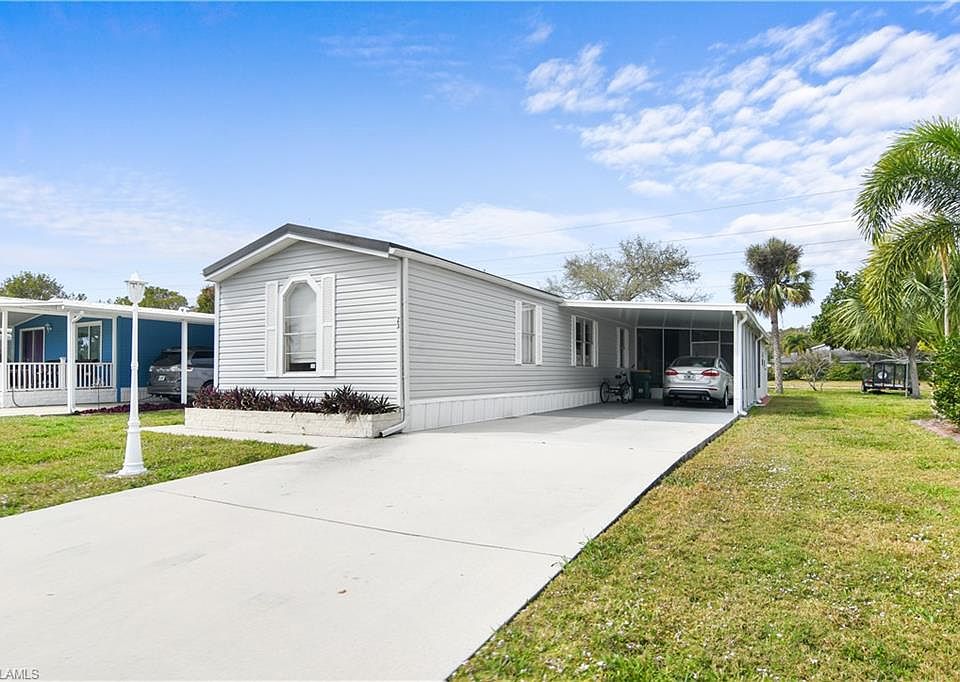 Last Buyers Couldn Qualify for the HOA membership. Now offering a well kept manufactured home in highly sought after Riviera Colony. The home sits directly across from the lake on a private no through street. Wood plank flooring in all the main areas. In home laundry, a screened in porch perfect for sitting out in the fresh air. A covered carport, new roof in 2018, newer AC and more. Riviera colony is a premier 55 and over community with a clubhouse, community pool, community room and an events calendar to keep you going seasonally or year-round. Great neighbors in a great neighborhood close to everything in Naples.