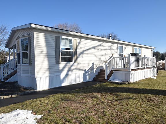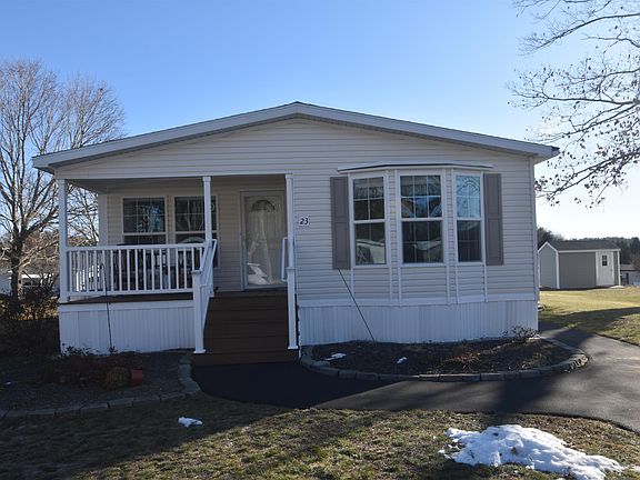 This turnkey property screams pride of ownership. Purchased new in 2017, these owners went to work on making improvements. From the engineered hardwood floors installed throughout, to the oversized composite deck on the side, they've recently replaced the refrigerator and hot water heater as well. The open concept living area is perfect for entertaining and all three bedrooms sit toward the back of the unit. The primary bedroom has its own 3/4 bath with double sinks, while the other 2 bedrooms share a bathroom with the rest of the home. It may be winter, but you'll enjoy the central a/c during those warmer months. This flat level lot that is moderately landscaped has a shed with its own deck that has been converted into a little woodshop. Cocheco River Estates is a 55+ community and the development offers both a clubhouse and in ground pool for its members. Conveniently located on Rte 11, it's a mile from Rte 16 and about the same from the Ridge Shopping Center where you can purchase groceries, do a little shopping in the handful of stores and grab a bite to eat at one of several restaurants. Again, this property doesn't need a thing, all you need to do is pick out your paint colors.