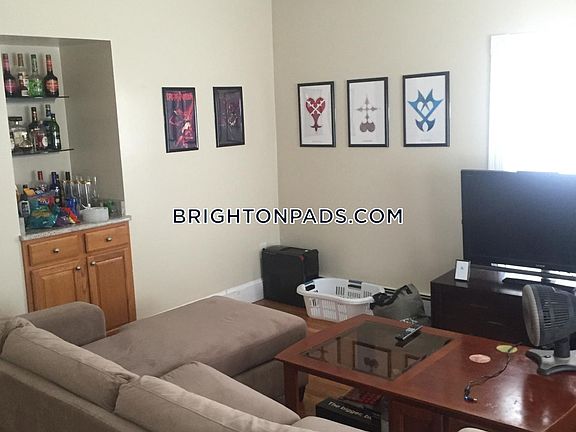 Great size 4 bed with great closet space 1 full bath Large living room eat-in kitchen washer and dryer in basement cat friendly prime location Natural light close to the T