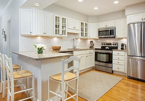 - Kit Dscrp: Flooring - Hardwood, Countertops - Stone/Granite/Solid, Recessed Lighting, Stainless Steel Appliances, Main Level, Peninsula
