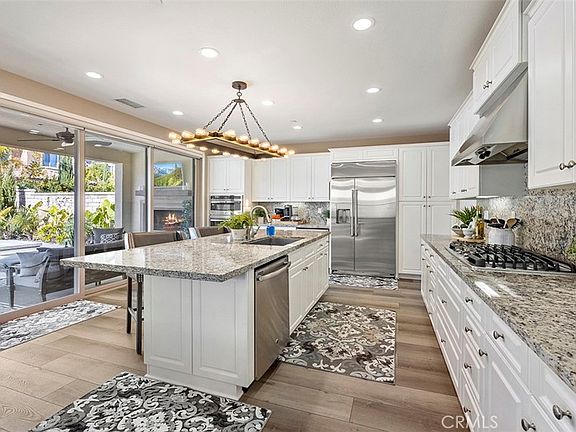 Welcome to your dream home in the highly sought-after community of Baker Ranch, where luxury meets convenience. This stunning property has 3 bedrooms, a loft which can be converted to a 4th bedroom, and 3.5 baths. Enjoy the comfort of ceiling fans and recessed lighting throughout, along with ample natural lighting. The luxury kitchen is perfect for hosting and includes granite counters, backsplash, and island; stainless steel appliances, and a double oven. Designer light fixtures in kitchen and dining room. Updated downstairs powder room along with new flooring, carpet, and interior paint in 2021/2022. The master bedroom suite has plenty of lighting and the bath features dual vanities and a spacious walk-in shower. Custom shelving in walk-in closet. Bedrooms two and three each have their own private bath. The upstairs offers additional hall storage, a separate laundry room equipped with a sink and cabinets for added convenience. You will also find a roomy loft with a dual station built-in desk. The staircase has been upgraded with iron, adding a touch of elegance to the home. The outdoor features are just as impressive, including a California room with a fireplace, ceiling fan, and TV connection. The patio area includes a built-in BBQ island with a fridge and counter seating, perfect for entertaining guests. A second firepit with seating area and lighted steps around the patio make it easy to enjoy the beautiful outdoor space. Landscape lighting adds to the ambiance of the property, while artificial grass in the front yard offers low-maintenance landscaping. Two-car direct access on larger corner lot. Luxurious amenities offered by "The Grove" Community Center in Baker Ranch. The state-of-the-art facility features a resort-style pool with cabanas and a splash pad for the kids, a fitness center with the latest equipment, and a clubhouse with a full kitchen, meeting rooms, and a large outdoor patio area for hosting events. The community center also offers sports facilities, including basketball and tennis courts, a baseball field, and a soccer field. There are also plenty of parks and green spaces throughout the community, perfect for outdoor recreation and relaxation. Come experience the ultimate in California living! No Mello Roos. Walking distance to neighborhood park. *All Bedrooms upstairs.