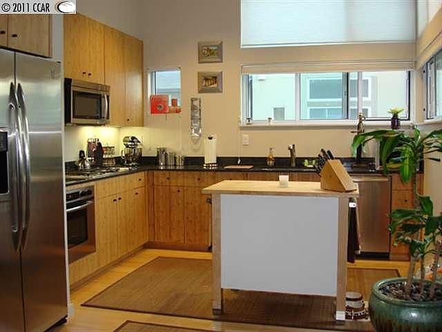 A very modern townhome with a high-end kitchen and vaulted ceilings. In a nice gated community on the Emeryville Border with easy access to the freeway.