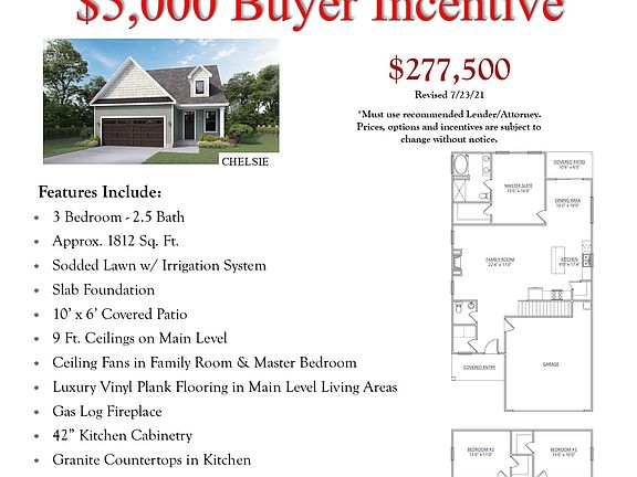 This plan offers an open floor plan with Master on Main and two equally sized bedrooms on the second level. All bedrooms have walk-in closets. The kitchen has a large island and generous kitchen pantry.