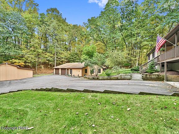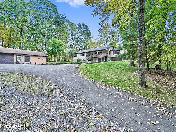 Amazing Opportunity To Own This GORGEOUS C-1 Zoned Family Property With 1+ BR DETACHED In-Law Suite W/ Separate Electric Meter, MULTIPLE Garages, Huge STORAGE BARN, AND A BEAUTIFUL 3BR 2BA Main Home On Almost 4 Peaceful Wooded ACRES! The Main Home Boasts Hardwood Flooring, Spacious Rooms, Plenty Of Storage, Tons Of Natural Light, Alarm System, Whole Home Generator & Has Been Exceptionally MAINTAINED! Kitchen Boasts Custom Cabinetry W/ Slide Out Drawers & Racks, Granite Countertops, Stone Backsplash W/ Access To Over-Sized Deck For Entertaining Or Enjoying Nature! Cozy Up W/ The Propane Stove In The Living Room Or Relax & Enjoy The View From The Family Room! This Poconos Property Is A Commuters Dream! Walking Distance To Bus line Stop, Minutes To Shopping, Golfing, Skiing, Hiking & Highways