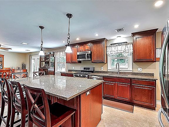 Beautifully sited on a quiet cul de sac street this ranch style home, close to schools, parks, shopping, and highways. Newer custom maple-wood kitchen cabinets, quartz counter-tops, an enormous center island, upscale stainless appliances that includes a built in microwave, tiled floor and recessed lighting. Open floor plan, oak floors throughout, good sized dining area with a door to the large paverstone rear patio. Living room with a large picture window, oak floors and a brick wood-burning fireplace. The newer windows and doors make this a very bright and sun filled home. Three generously sized bedrooms and the master has a full bathroom, great closet space. The lower level adds an additional 600 sq ft of professionally finished living space with its own heating zone. Newly painted exterior. Very well maintained. The central air is almost complete, the duct work and air handler are in. The condenser and the system needs to be wired. The seller has a written estimate of $4500 to complete the system.