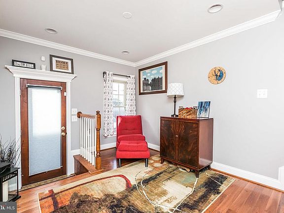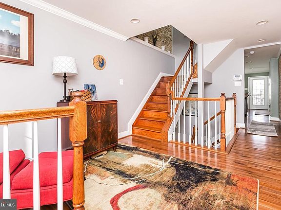 End of group rowhome, steps from Patterson Park with off street PARKING, beautiful kitchen, and master suite. The welcoming main level has hardwood floors throughout, and the staircase as the architectural centerpiece. Kitchen features granite counters, stainless steel appliances, a breakfast bar, and plenty of space for a dining room table. The master bedroom upstairs with hardwood floors has an en-suite bathroom, walk in closet, and private balcony. Basement functions as a sunken living room and features a full bath. Block ends at Patterson Park, which offers 300+ acres of green space. Home featured on HGTV house hunters.