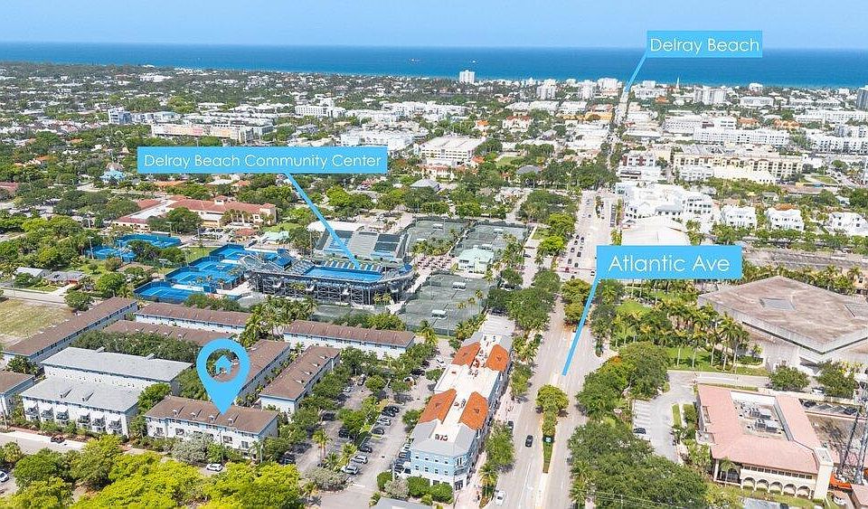 Fully renovated 2BD/2.5BA + den townhome just steps from Atlantic Ave and Delray Tennis Center. Features include an oversized 2-car garage, new A/C, all hurricane-impact windows and doors, and an open-concept layout with a private balcony. Enjoy a sleek new kitchen with European-style cabinetry and top-tier appliances. Updated bathrooms, floors, stairs, and more. Located in an upscale gated community with a heated pool, less than a block from the Ave. Private front entrance and gated garage access.