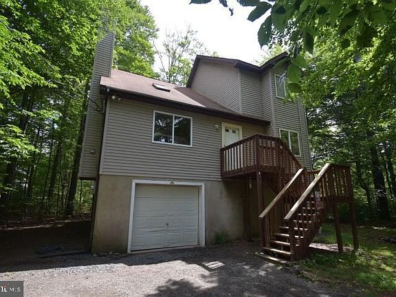 Contemporary home in the community of Thornhurst County Club Estates. This 3 bedroom, 2 bath home with a 1 car garage has everything you need for comfortable living. Main floor has a living room with hardwood floors, a brick wood burning fireplace with Heatilator. Dining area has doors to the upper deck. Kitchen has tile floors and countertops. Main bathroom has tile floors and a linen closet. One bedroom is on the main floor. Lower floor has a full size washer/dryer area, garage with electric door opener. Upper area of home has a loft, 2 bedrooms, and a bathroom with tile floors. Home has central A/C & heat. Vinyl exterior for easy maintenance. Yard has a fire pit for enjoying the evenings in the Poconos. RENTALS OF LESS THAN 3 MONTHS ARE PROHIBITED IN THIS COMMUNITY.