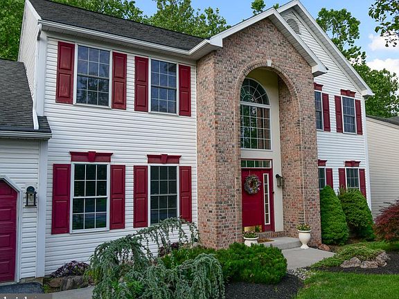 Showings begin Friday June 11th. This 4BR, 2.5 BA Colonial has a nice flat front yard/driveway and a private rear yard which backs up to the woods to the rear. Walking in the front door your graced by a two story entranceway with the living room/office to the right and the dining room to the left which has been freshly painted and carpeted. When walking towards the rear of the home there is a nicely laid out full eat in kitchen with stainless steel appliances and attractive hardwood flooring with a working island in the middle to help with all the meal preparations. Off of the kitchen is a laundry area and a half bath. Next to the breakfast area is the attractive family room with its wall of windows accented nicely by transom widows above and a floor to ceiling gorgeous stone gas fireplace and new carpeting. Out through the sliding door from the kitchen is a large deck overlooking a wooded area and very small creek. Upstairs you have the huge master bedroom with a huge walk-in closet, super style bathroom with double vanity and creative and artistic accents you have to see. There are three other bedrooms and a full bath filling out the second floor. The basement is poured concrete with windows and a walkout to the rear yard. There is a reverse osmosis water system and water softener and a section off the one wall already plumbed for a bathroom plus a sump pump in the corner near the walkout door to the rear yard. This home has it all with its convenient location in a nice neighborhood close to the Middle and Jr High and Senior High Schools and athletic fields. It's a spacious home in a cup du sac style setting with a flat front yard/driveway and a large deck and patio area facing the woods for lots of privacy.