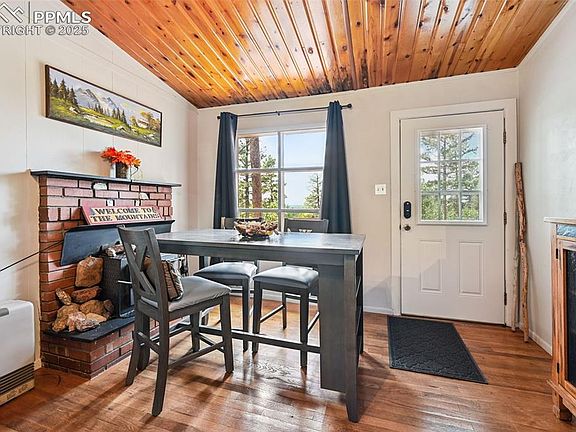 TINY HOME GEM in Woodland Park tucked away on a heavily wooded double lot totaling .58 acres and just 500 feet from the Pike National Forest from the communities private entrance. Walking up to the home a large front porch creates the perfect space to have your morning coffee during the warmer months. Through the front door the home beckons you in with a cozy living room featuring a wood burning stove. The galley style kitchen has a refrigerator, microwave, and range/oven. The home has two bedrooms that share an updated 3/4 bath. The property has two storage sheds and a single detached car port. Woodland Park is an incredible community with a great downtown area, whether it be the history of the Donut Mill and their great treats, the Ute Inn for a fun night, or a locals favorite the Hungry Bear for breakfast. Woodland Parks access to amazing outdoor activities is also endless with places like the Pike National Forest with numerous ATV and dirt bike trails, tubing on the Tarryall river, hiking through 11 mile canyon, the crags, or Rainbow falls for all of the above, it's all just minutes away.