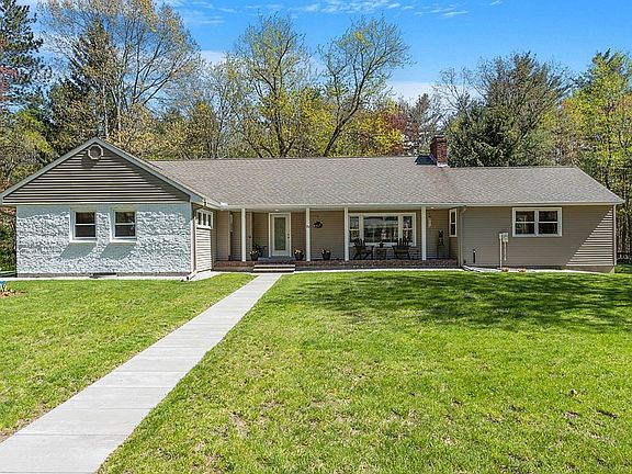 Location, setting, condition - one level living at its best! Quality-built Ranch presents fresh, modern vibe. Completely & thoughtfully renovated since 2019. Offers spacious, flexible floor plan & wonderful, level yard. Nature beckons with 100s of ac. of conservation land, including Audubon Land & miles of trails. Easy access to Routes 495, 2 & 3. Large Kitchen features Shaker-style cabinets, custom granite counters, breakfast bar, stainless steel appliances. Dining Rm opens to Sun Porch. Passive solar warms slate floor, electric space heater included. Living Rm features built-in shelves & vintage, white-washed FP. Huge light-filled Family Rm over garage. Lg Main BR + 2 additional BR's. Pocket door opens to newly-designed Full Bath w/ tiled walk-in shower. Half Bath, coat closet, linen closet. Truly huge basement w/ Rubber mat flooring. Extra-wide 1-car garage comfortably accommodates mower, snow blower, bikes... Charming front porch & private back deck, lots of wildlife sightings.