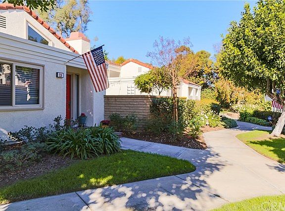 Property is vacant! Beautifully remodeled single level two bedrooms, two baths cottage style with no steps. Open floor plan with with lots of natural light, high ceilings and great use of space. This lovely home offers two master suites, new Interior paint, recessed Lighting, custom fireplace, eat-in kitchen with extra cabinets and counter space. Large dining room, spacious master bedroom and expanded master bath with raised ceilings, extra-deep soaking tub and shower. Pergo flooring and tile. Second bath also totally remodeled, custom shower with glass accent tiles, crown moulding, Milgard dual pane windows throughout. French door opens to flagstone patio. Second bedroom currently being used as a office with a Queen-size pull-down (Murphy) bed prefer, Beautiful Community Pool and Spa. Two-car garage with built-in storage cabinets (lockable) and plenty of storage space. Close to UCI and just a few blocks from Mason Regional Park. Excellent schools including University High School. This unique tree-lined community is tucked away next to the golf course and The Racquet Club.