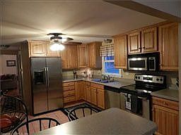 Meticulous cape with a warm and inviting open floor plan, hardwood floors, FP in LR with a gas insert, updated kitchen with oak cabinets and SS appliances, DR, den with vaulted ceiling, updated baths, full basement 2 car garage, .94 acre lot, outbuilding