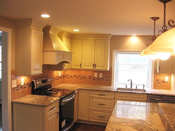 Completely renovated home. All of the following are NEW: Septic system, roof, windows, exterior doors and sliders, garage doors, bulkhead, driveway, stone retaining walls, stone and granite front and rear stairs, patio, exterior trim, master bath, s.s appliances, all light fixtures, exterior and interior paint, refinished hardwood floors. Also, NEW: landscaping, shrubs, stone planting beds, loan, and hydro-seeding. Recently remodeled kitchen w/custom cabinets, granite counters, garden window over sink, & large,two-tier breakfast bar. Spacious great room w/sliders leading to new patio. Front to back living room with fireplace. Large, versatile, side entry room. Updated 1/2 bath on the first floor. Second floor has three bedrooms & 2 renovated bathrooms. Master bedroom with brand new master bathroom. Newer Weil Mclain boiler and Superstor hot water tank. Over 1 acre lot w/ large, cleared yard & also wooded and private. Great country setting, yet close to highway and shopping