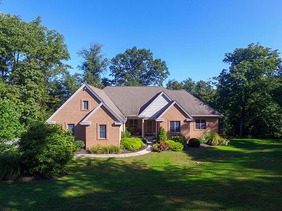 Nauman Custom built ranch home on over 7 peaceful acres. Open floor plan with hardwood floors, Corian kitchen with backsplash, top of line appliances and breakfast bar. Family room with vaulted ceiling & fireplace, dining room with custom built ins and partially finished lower level. Master suite with access to deck, whirlpool tub & tile shower. Large rear deck has views of private wooded lot and mature landscaping.