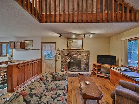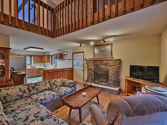 With some TLC this home can be great! Located in a four season amenity filled community in The Northern Poconos, just two hours from the NYC and Philadelphia Areas. Great location in the ''golden triangle''. Nice large, level wooded lot for privacy, 3 bedrooms 2 baths, pine floors, lots of space. 2 car garage with a partially finished upper level that offers additional space, with electric etc. This home has a lot to offer needs a bit of TLC to shine.