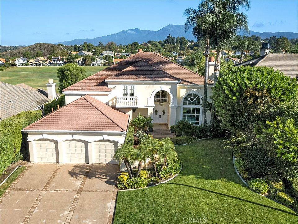 Welcome to 23 Oakbrook, Coto de Caza, CA. This exceptional home checks all of the boxes: gorgeous golf course and mountain views with a private expansive backyard featuring classic pool and spa — all located in the prestigious and popular neighborhood of "The Greens”. This stunning property is an exceptional residence for those seeking both comfort and elegance. The 5 Bedroom, 4.5 Bathroom, 4,570 sqft home is located on the 13th fairway of the North Golf Course in Coto de Caza with a Northern backyard exposure framing panoramic views of the golf course and Saddleback mountains. The gourmet kitchen has maple cabinets, soft-close drawers, considerable storage, granite, stainless Dacor 6-burner stove, warming drawer, double ovens, 2 microwaves, 2 dishwashers, & built-in Sub-Zero refrigerator. The upper level family room has a fireplace with a 100 inch projection movie & sound system, wet bar, large balcony and grand views. This home is highly upgraded with walnut & travertine floors, custom wrought iron railings & complimentary lighting fixtures. The primary suite has a sitting area with fireplace, remodeled primary bathroom, separate shower and tub, 2 walk-in closets with organizers and access to lower level private patio. Other home features include: a bedroom/office with built-ins, private entrance and a built-in hideaway bed, a 2-story bookcase library area, 2 wet bars & wine closet. The secondary bedrooms are generous in size with ensuite bathrooms. Entertainer's Resort-style backyard is perfect for entertaining with views of the golf course, mountains, well-appointed landscaping, private 2-level back yard, swimming pool & spa, and trellis covered sun-bathing deck. Parks and hiking trails are just steps from the front door. 3 car garage w/ sealed epoxy floors & storage cabinets.