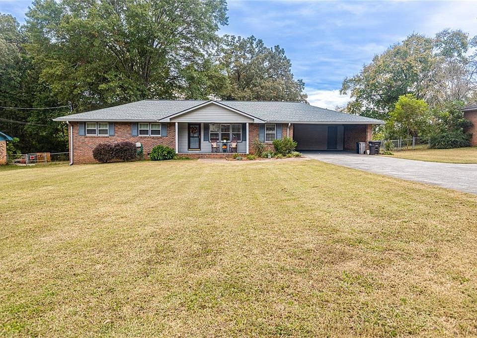Absolutely adorable 3 bedroom 2 bath ranch on level lot in the city of Cartersville! Huge 30x17 living room with wood beams in the ceiling, wood burning fireplace, large bay window with storage on each side & underneath. Main bedroom is large enough for King bed with room to spare. On suite bathroom has oversize soaking tub and seperate large shower. Formal dining room but it could be converted to office or game room easily. Large 16x28 building in back yard with seperate rooms. Fenced in back yard is perfect for pets or entertaining. Rocking chair front porch. Tons of living area, storage and space in this ranch home