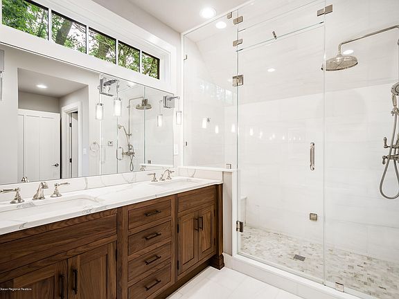 NOTHING TO DO BUT UNPACK! Fabulous waterfront retreat UPGRADED TO THE HIGHEST STANDARDS-not a single detail has been overlooked! Light & bright interior w/ crisp white custom millwork & a fabulous open layout. Designer baths are out of a magazine & updated to perfection w/ top of the line fixtures & custom vanities. Gourmet kitchen w/ high end inset cabinetry, over-sized island w/ seating, breakfast area & double-sided FP all open to expansive family room w/ French doors to covered porch, patio & yard. Lux master w/ WIC w/ custom built-ins, marble bath w/ radiant heat & private terrace. Generous sized BRs w/ great closet space, 1st fl office w/ custom built-ins, newly finished basement w/ temp ctrl wine cellar, theater, play room & more. NEW HVAC, generator-too many amenities to list!