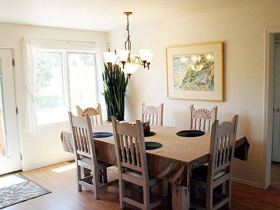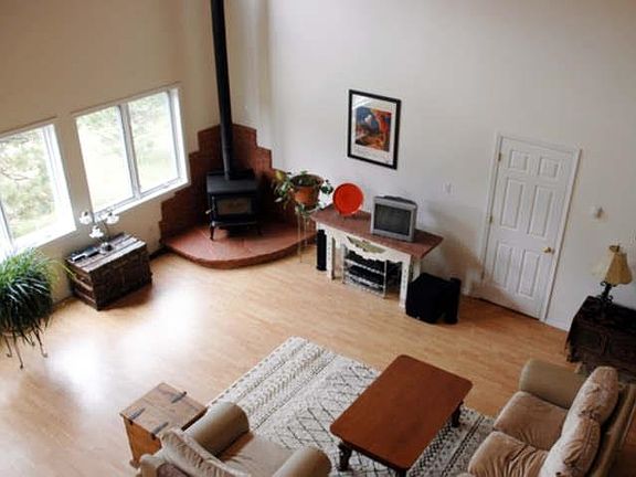 Southwest Alpine Home close to the Angel Fire Country Club, large greatroom, efficient kitchen and dining area. Laminate wood flooring, vaulted t&g ceiling in great room and loft. Pella metal clad wood windows throughout, wood burning stove and propane central forced air heat, covered redwood entry deck. No furniture included. Having AF membership entitles owner access to golf, fishing at Monte Verde Lake and/or skiing at AF Ski Area.
